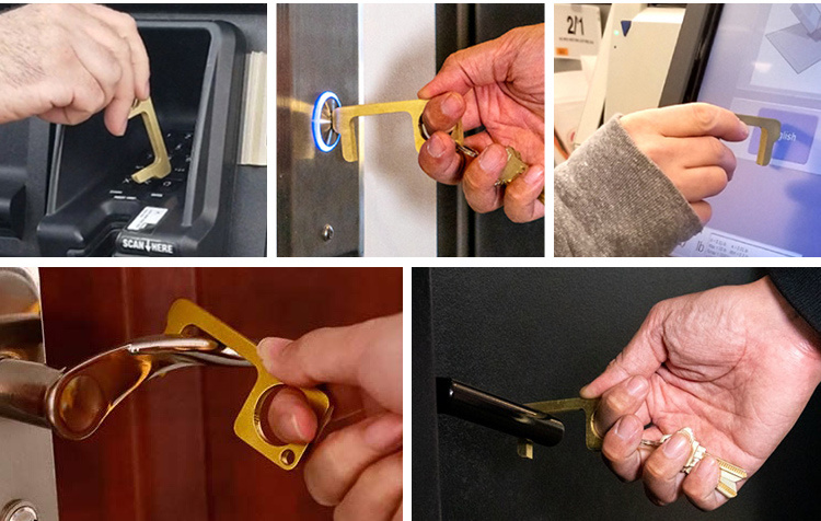 An EDC (everyday carry) keychain tool, offering a safer way to open doors & public shared surfaces like checkouts, elevators, ATMs.