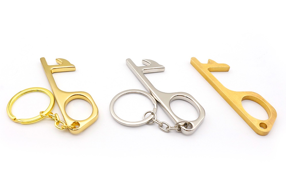 NO TOUCH germ-free, antivirus and antimicrobian, door opener & keychain with bottle oppener.