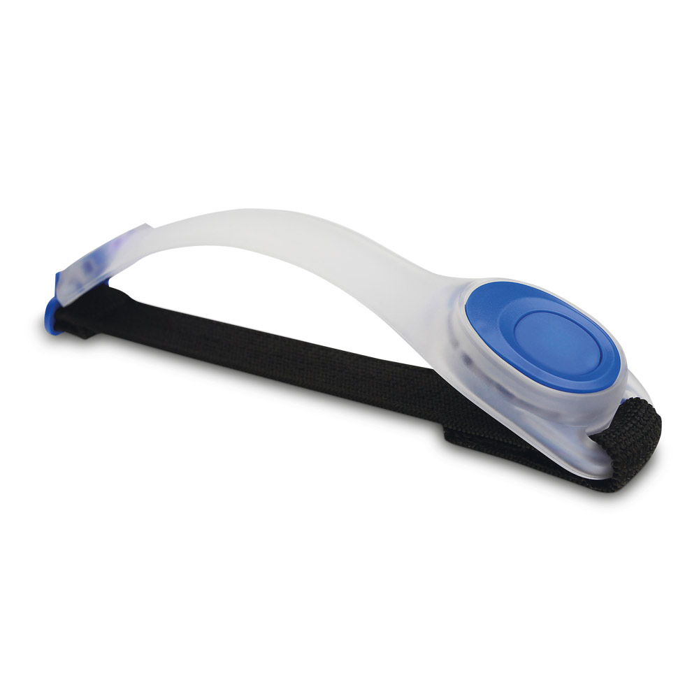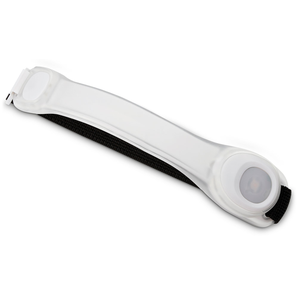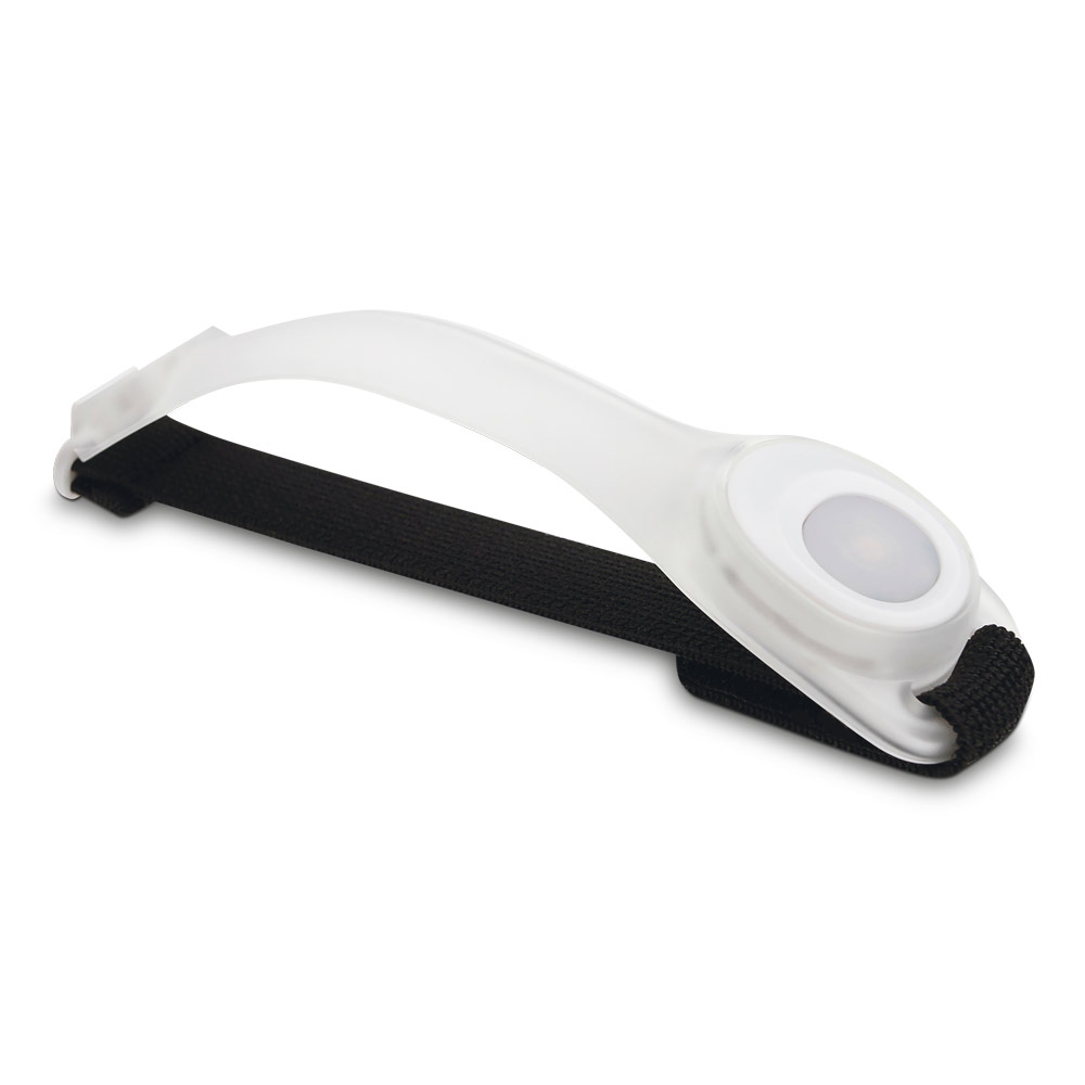 Silicone band with 2 LEDs and elastic velcro strap. Cell batteries (2x) are included. silicone band 185 x 13 x 37 mm, elastic strap 220 x 20 mm