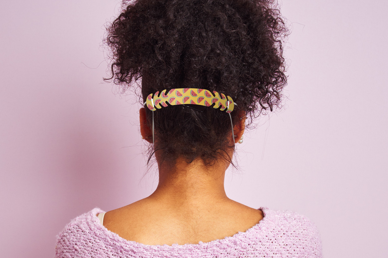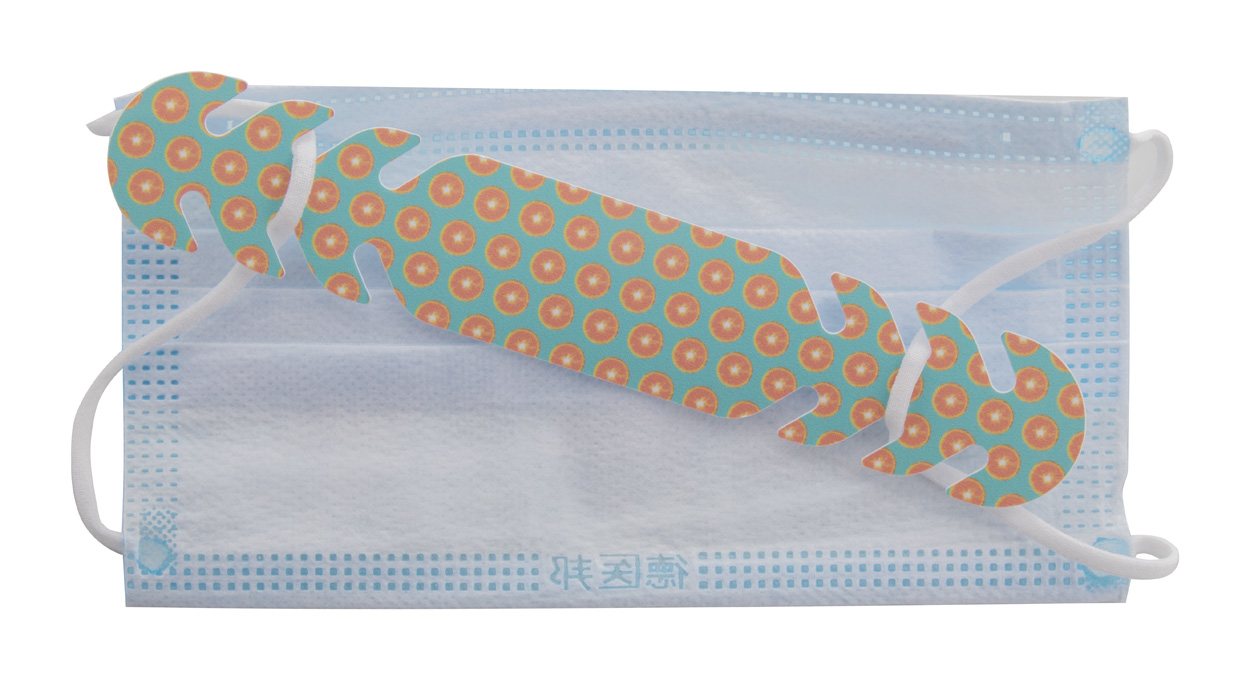 Custom made, full colour printed face mask extender in PP plastic. It is designed to release pressure caused by mask earloops. With 3 positions for 8, 11 and 14 cm extension. In universal size for adults. Price includes UV-LED printing on one side.