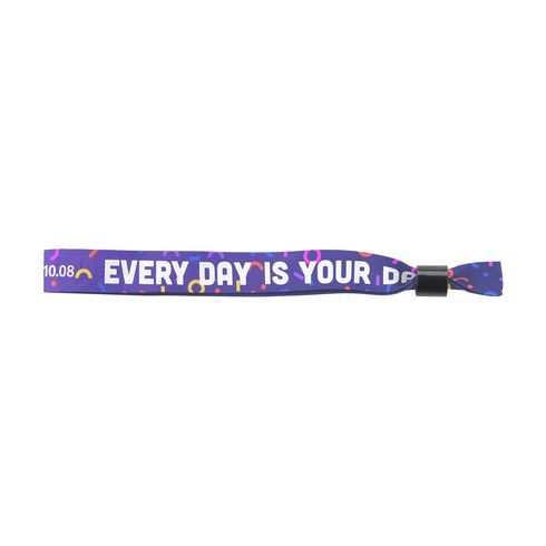 Festival strap made from RPET polyester. With self-grip closure made from recycled plastic. Includes your own full colour sublimation printing on both sides. A perfect item for controlling access to events or as a reminder of a festival. Promotional and functional.