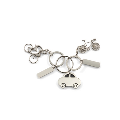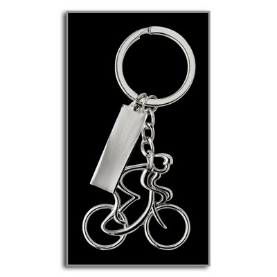 Keyring "cyclist with bicycle" with rectangular plate for personalization, in presentation box