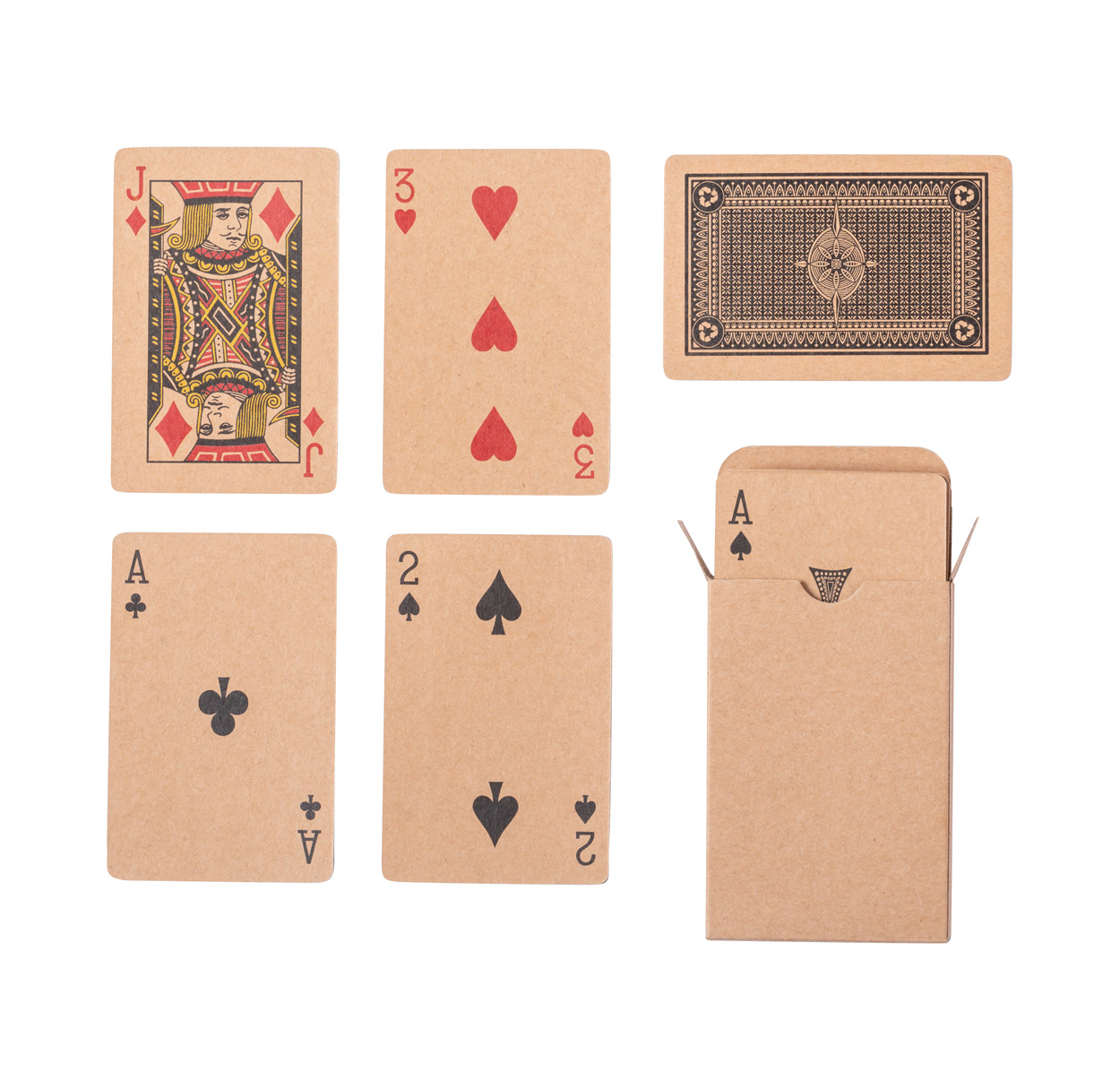Recycled paper French playing cards in kraft paper box. One standard deck with 54 cards.