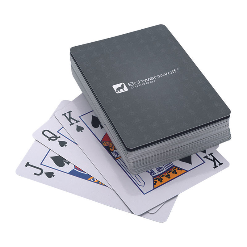 Schwarzwolf travel set of a playing card and a dice in a tin box. You will certainly welcome this set, for example during your camping trip, when you and your friends will be able to enjoy the evening with a fun game or just at home with your family. The set includes 54 playing cards with a water repellent surface treatment, 6 dice, 15 note papers and a pencil. Packed in a gift box.