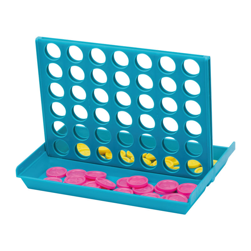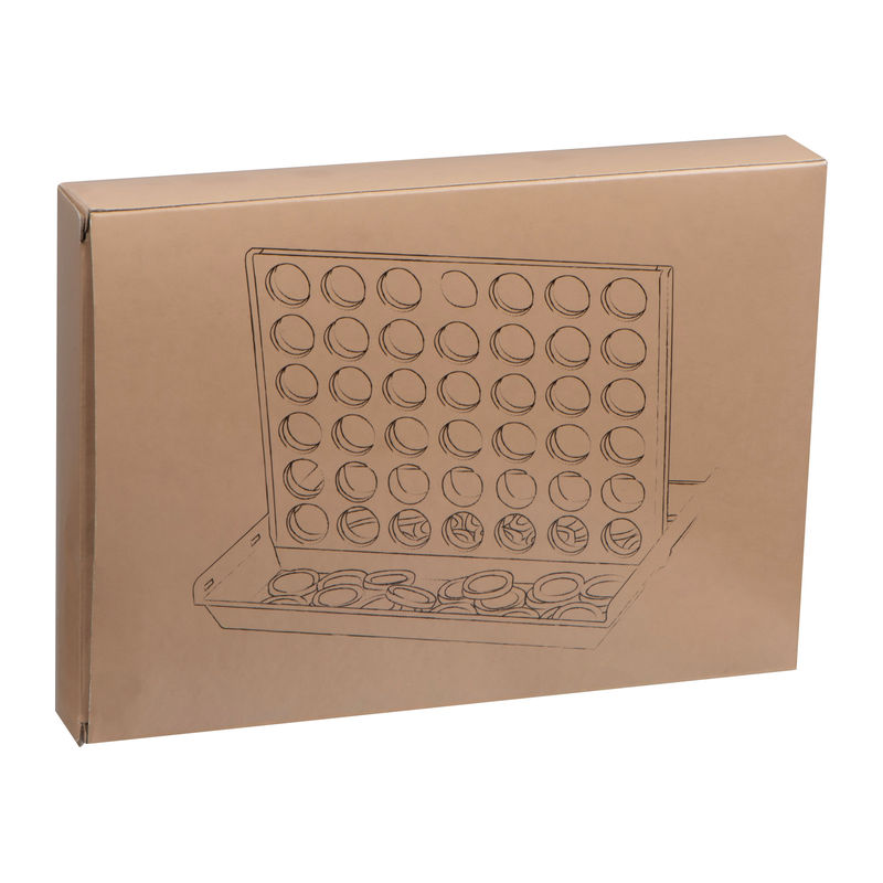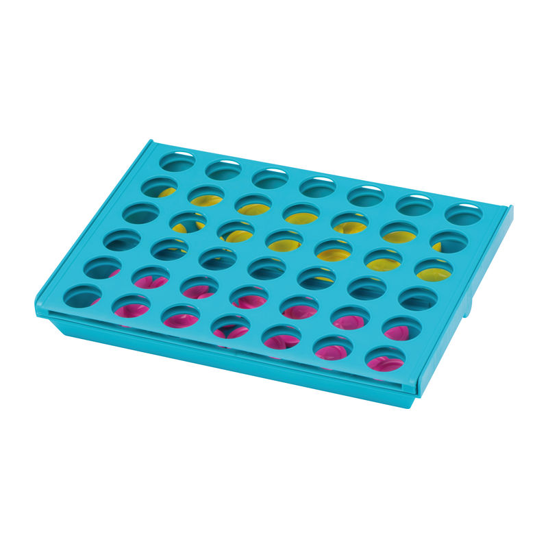 4 in a row with yellow and pink gaming pieces. The playing field is foldable and suits perfectly for trips. Your logo will be printed onto the playing field.