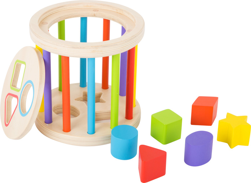 Can you find the right shape? With this brightly coloured motor skills toy, the geometric shapes must be inserted into their proper openings. Coloured poles catch the shapes. With this toy, children will playfully learn about shapes and train their fine motor skills. This product is distinguished by its solid wood and beautiful colours. The shapes can be retrieved by opening the lid, and can then be sorted all over again. This motor skills toy belongs in every children's room!