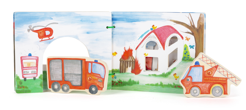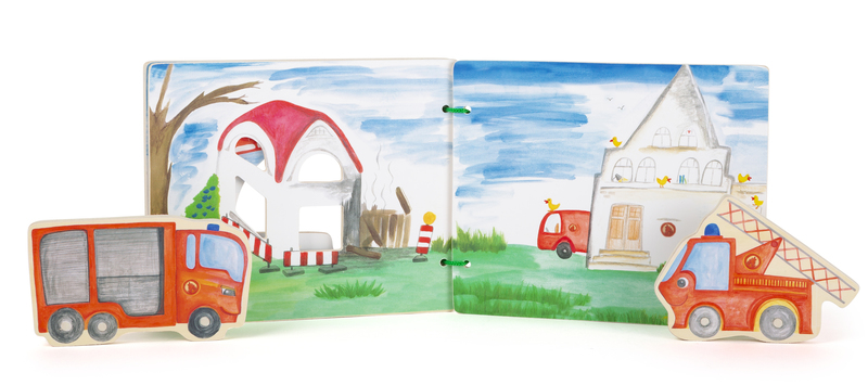Screen Printing| Dimensions | Wooden book approx. 18 x 15 x 2 cm Fire truck approx. 12 x 7 x 1 cm |