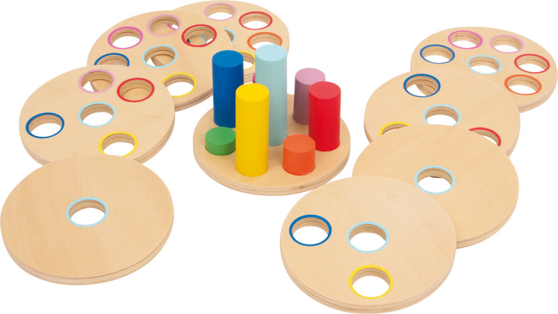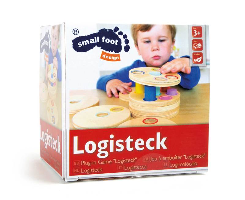 It´s like a puzzle but just more interesting. Logisteck inspires immediately and trains the fine motor skills! The goal is to put all the plates with the coloured holes on them to the suitable coloured pillars. However, that´s easier said than done...! Think precisely, look accurately and try to plug the suitable discs – a great plug-in game that trains motor skills and hand-eye coordination! 8 stable discs (1 cm thick) made of finely elaborated plywood to be placed on coloured bars. Since the bars are of different lengths and each disc has always its aperture smaller than the previous one, that means there is only one way to solve this game!