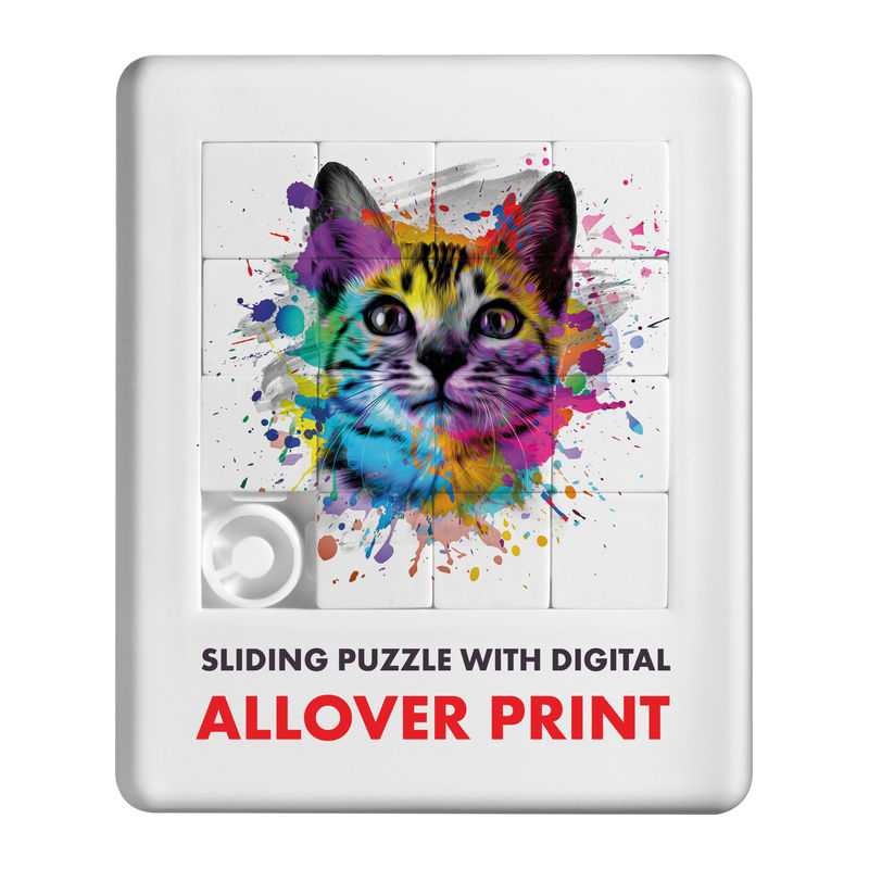 Plastic sliding puzzle featuring 15 pieces and an integrated stopper for enhanced play control.