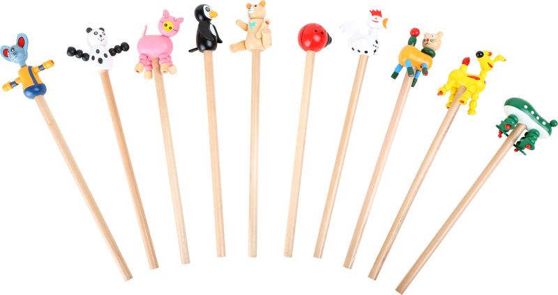 Ten wooden pencils are decorated with different animals. The small animals are individually designed and everyone can choose the appropriate pen. These pencils are a great souvenir or gift on childrens birthday parties.