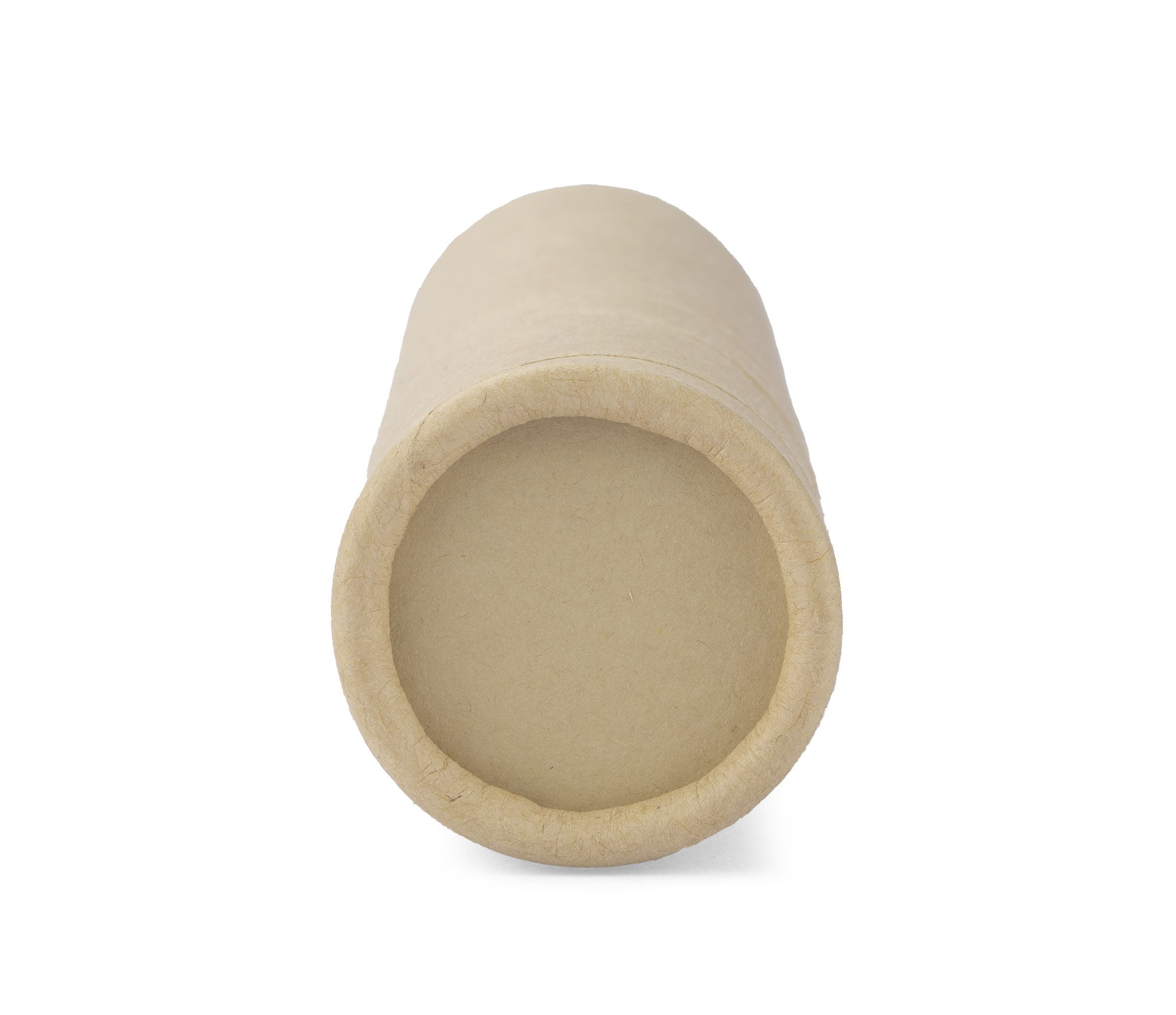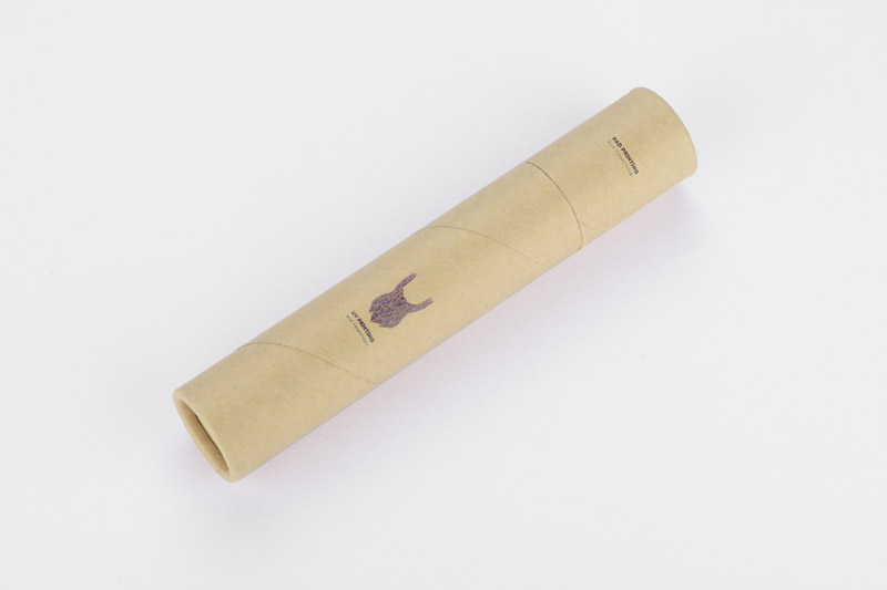 Ecological pencil case made of tube-shaped kraft paper. The set includes: paper pen and wooden: pencil, sharpener, ruler and eraser.