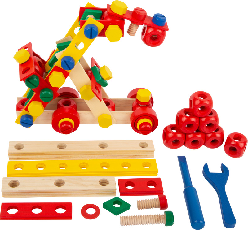 With this creative kit no wishes remain unsatisfied. Here you can assemble the most amazing constructions. The colourful wooden pieces can be bolted individually and turn into an impressive construct. Every kid will be an architect and will improve motor skills!