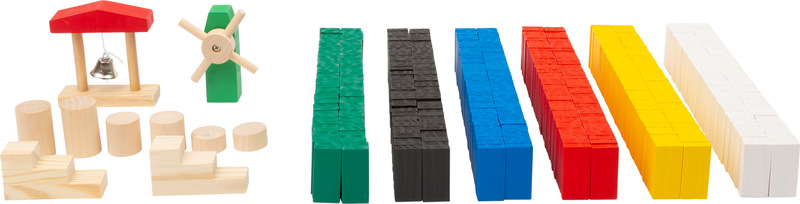 A dominoes classic for both young and old! This dominoes game offers playtime fun all along the line. With 490 differently-coloured wooden domino pieces, you can build an entire fun-filled dominoes obstacle course. The additional wooden shapes and stairs increase the difficulty level. At the end, a goal with a little bell awaits the final falling domino piece. Young tinkerers will become big master builders with this classic game which will challenge their concentration skills and let their creativity run free. It's an exciting playtime experience that belongs in every children's room.