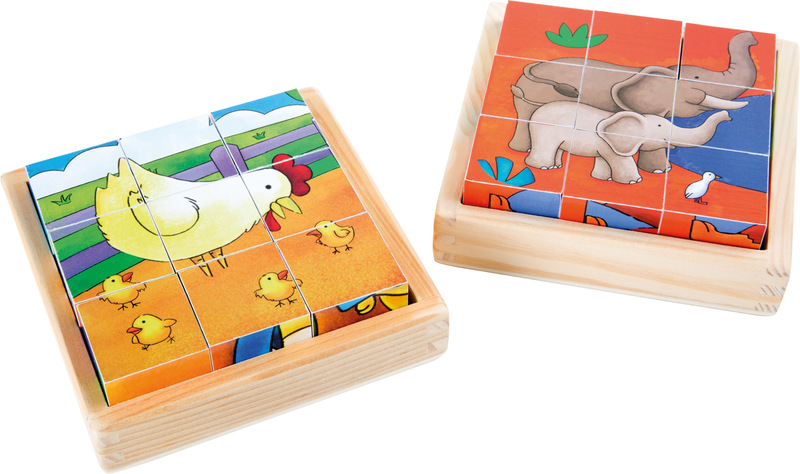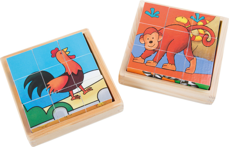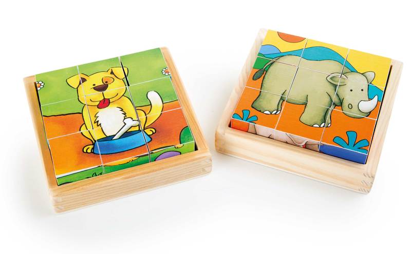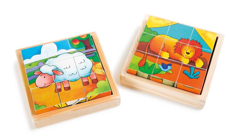 With farm animals and zoo animals everyone will find their favourite on this wooden puzzle set. Each puzzle is made up of nine pieces and it can be laid in six different ways. This requires patience and whoever wins is the puzzle king or queen!