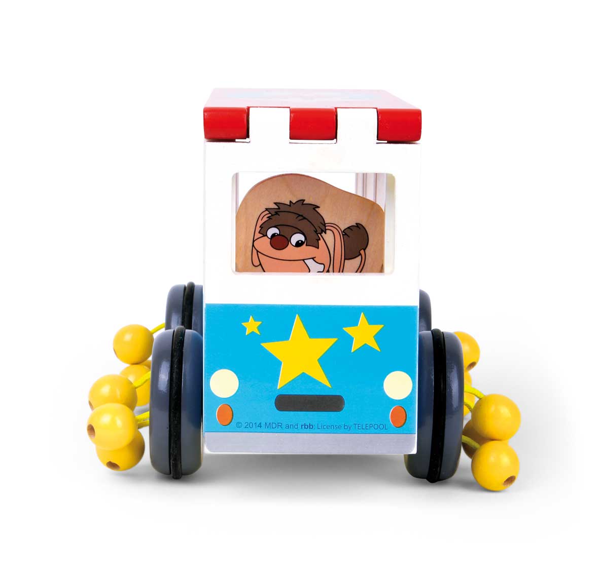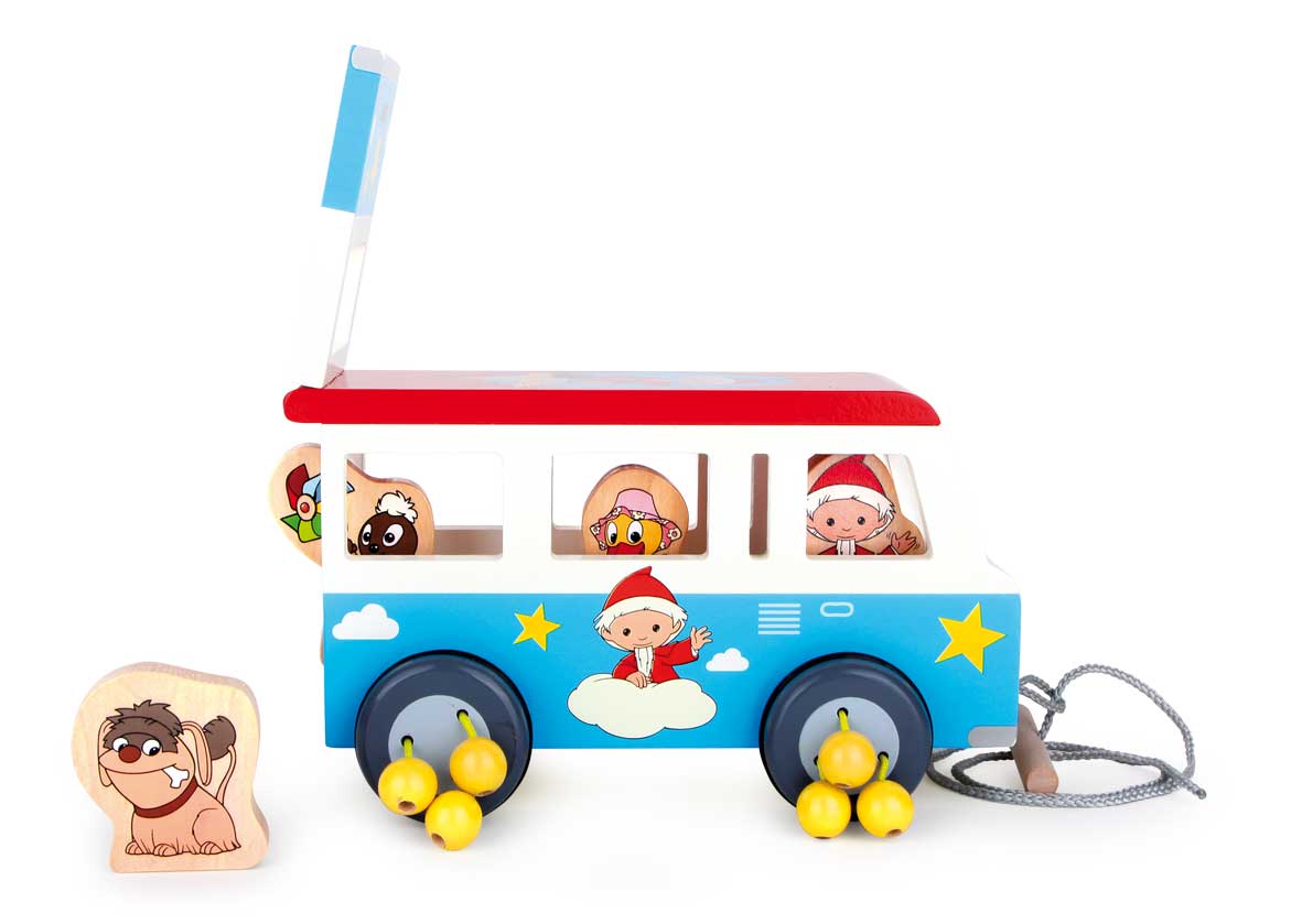 Get on board! Sandman and his friends climb in, the door closes and all together get on the road approaching new adventures. The wheels rattle and with a string fixed at the engine block the coach picks up speed.
