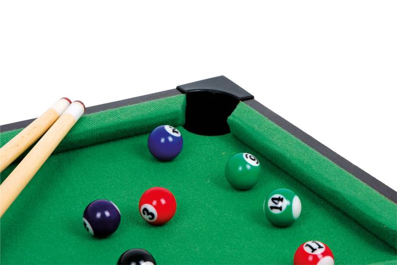 A good and playful training of the fine motor skills and the hand-to-eye-coordination is this small pool table! Including 2 cues, balls, triangle and chalk. Exciting games are guaranteed.