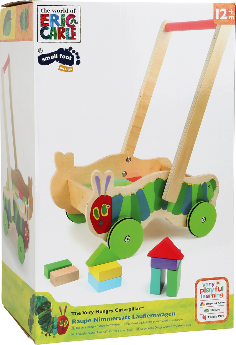 The Very Hungry Caterpillar by Eric Carle is always a hit in all forms. Young children gain confidence on their feet with this walker. The 22 colourful wooden bricks ensure creative fun during breaks.