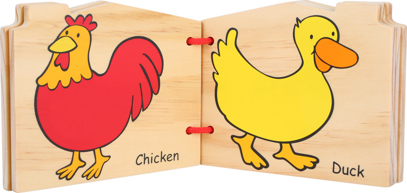 Multi-coloured funny pictures are printed on 10 pages of neutral varnished wood. 8 animals are shown in this book.