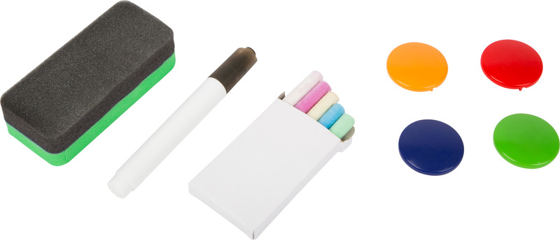 A four-legged multi-talent! Whether used as a table, a chalkboard or a magnetic wall, this multifunctional toy will impress creative kids all over. The screw fittings allow this chalkboard table to be easily assembled and reassembled into the desired function. Writing utensils and drawing supplies can be kept in the storage space. Sponge, chalk, markers and magnets are included. Now the creative afternoon can begin!