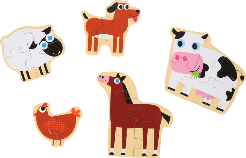 Who?s crawling around there? Five friends from the farm are waiting to be assembled. This puzzle made of robust varnished wood is a great fine motor skills exercise. The puzzles are made up of 2-6 pieces. Cow, horse, dog, sheep, and rooster are lovingly painted in great detail. The youngest children can try out their coordination and learn the animal names at the same time. All pieces can be stored in the stable wooden box, which makes it great for on-the-go. This puzzle box is a real classic loved by all!