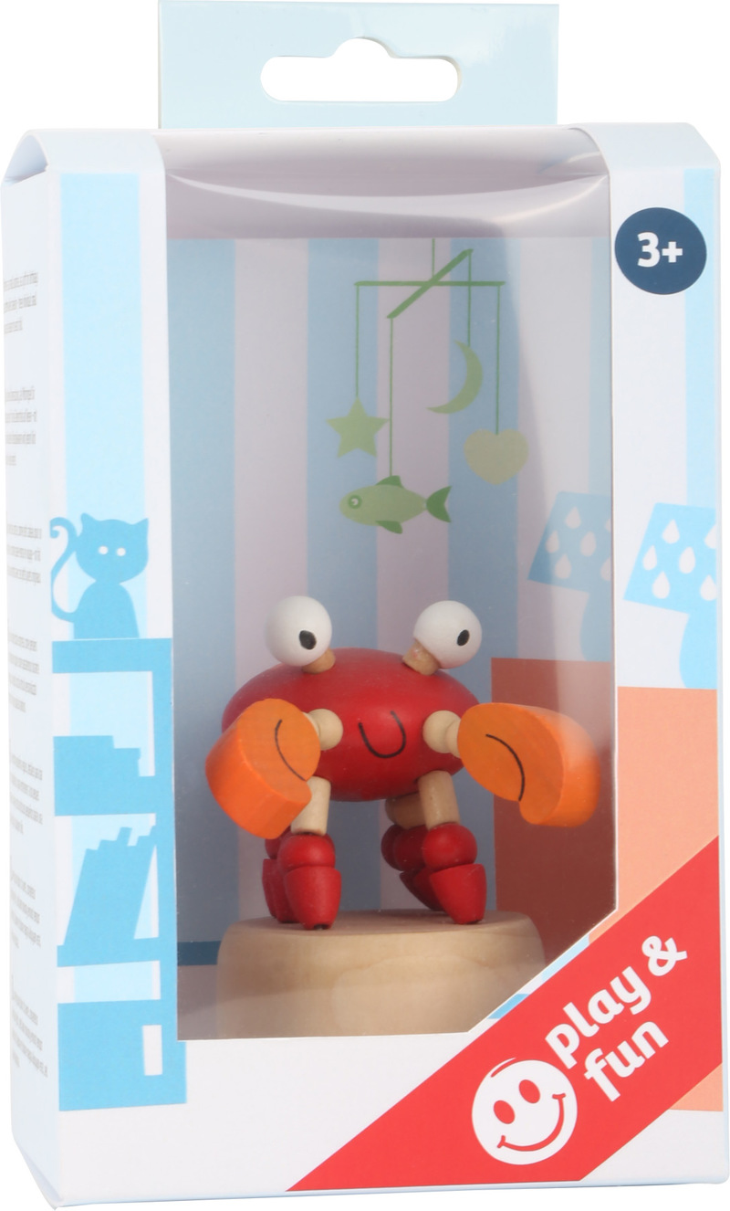 There's a lot of wiggling going on here! Pressing the bottom of this toy brings this jolly crab to life and creates new, silly movements by applying different pressures to the bottom in different locations. Made of 100% FSC?-certified wood. Lots of wiggling fun!