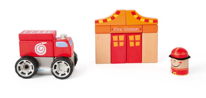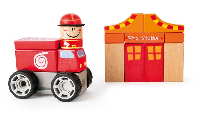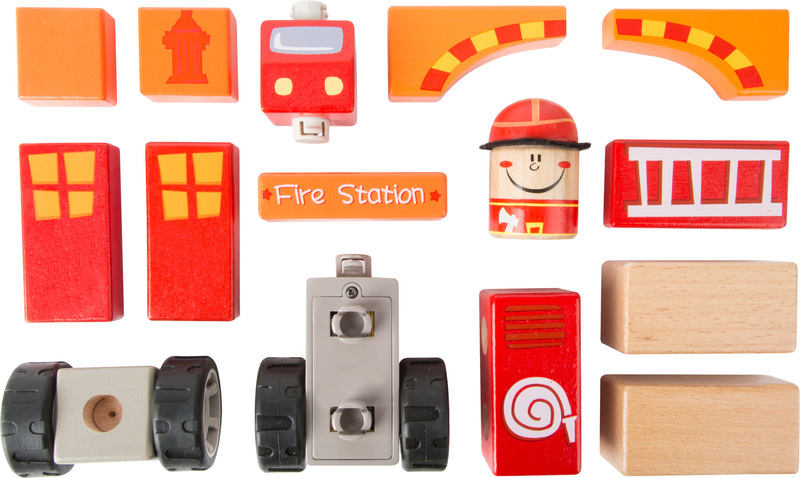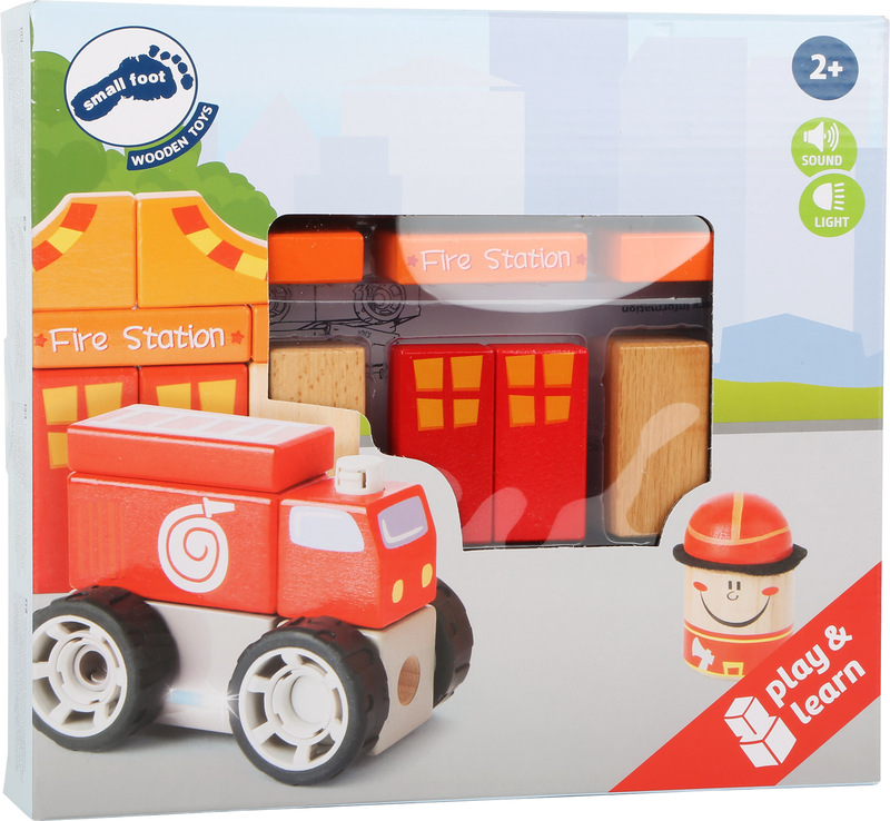 Attention all builders! This wooden construction set offers the full set of fun. Little handymen try their hand at building the fire engine and fire station, and playfully train their fine motor skills all the while. And here?s the great thing: the truck makes real fire engine noises when it?s driven forward! So let?s go, on to the next call! 2 AAA batteries are needed for operation (not included). Great: when driven forward, it makes real fire engine siren sounds. Off to the next fire dispatch call!
