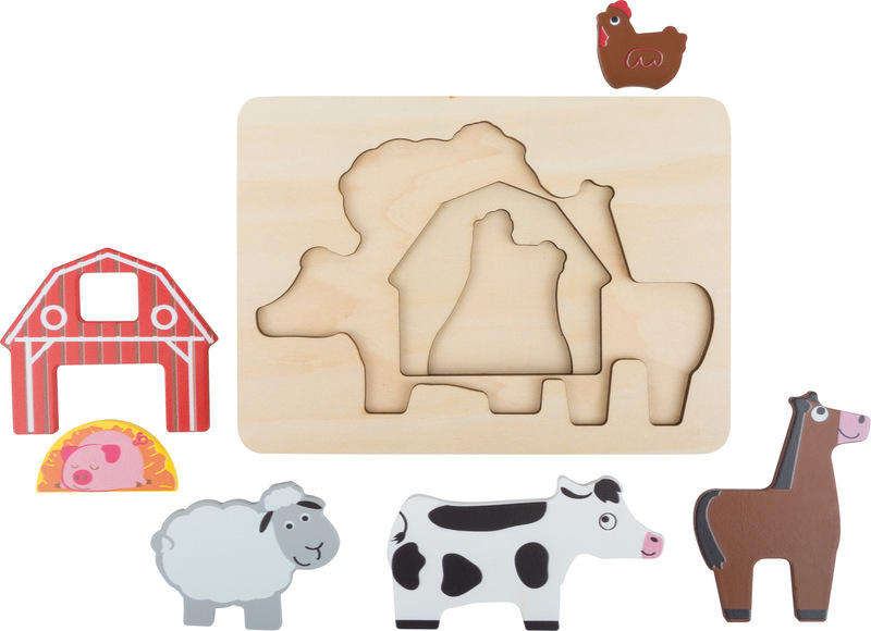 Attention all farmers! Which animal will be looking out of the farm windows? This layer puzzle playfully trains a child?s knowledge of shapes and their motor skills. You can puzzle over and next to three different layers with this wooden layer puzzle. The robust puzzle pieces can be gripped easily and fit perfectly in children?s hands. A beautiful motor skills toy for every children's room!
