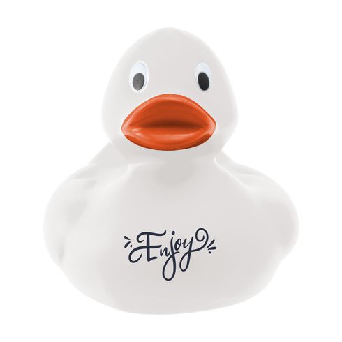 Rubber duck bath toy made of PVC.