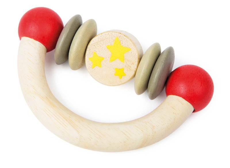 This cute grip toy is a great first toy! Curious babies can easily grip this half-circle made of sanded, smoothed wood, and they can experience the moving beads with all senses. This grip toy naturally comes with a saliva-proof coating and can be easily cleaned with a wet towel. The cute motifs of Ludwig complete this baby toy perfectly. Here it?s Ludwig, who makes a particularly good impression as a grip toy!