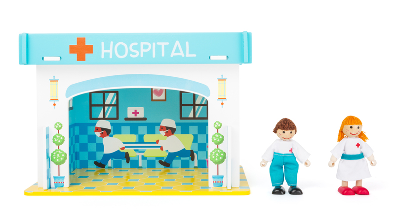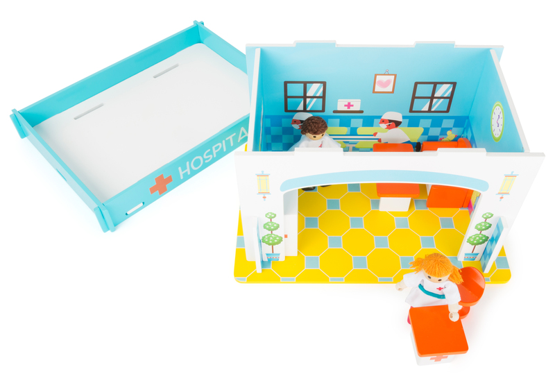 Got a busted knee and a bump on the head? In this hospital made of robust wood, all patients young and old will be quickly nursed back to health! Doctors and nurses are included in the delivery and are ready for both big and small operations. The four walls and the roof made of robust wood area easily assembled and constantly provide new fantasy-filled playtime adventures.
