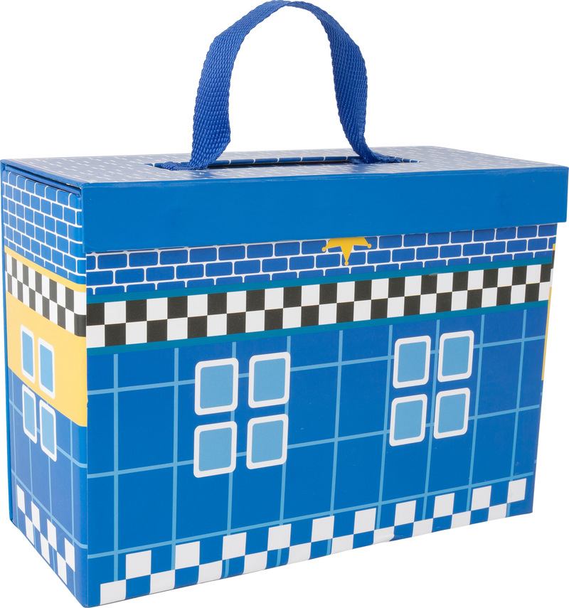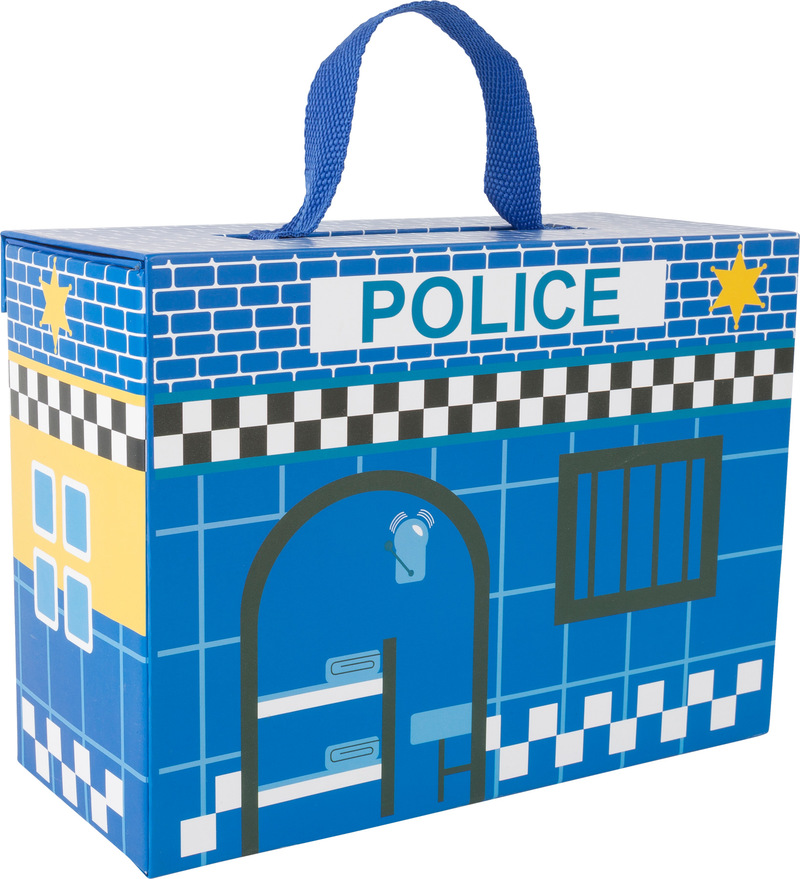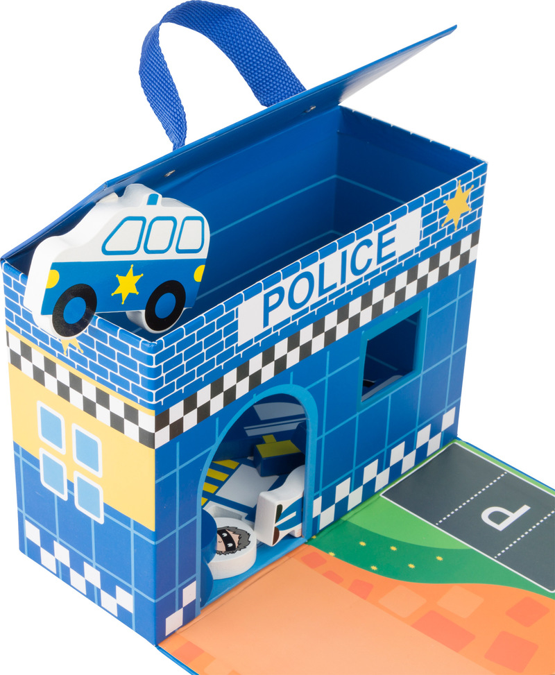 All police officers are at the ready here. Is an exciting criminal hunt happening? No problem! Simply open this play set made of stable cardboard and the mission can begin. When all the bank robbers are sitting behind bars, the play set with the action figurines made of FSC? 100%-certified wood can be easily folded back together and brought to the next mission. A great game for promoting social competencies.