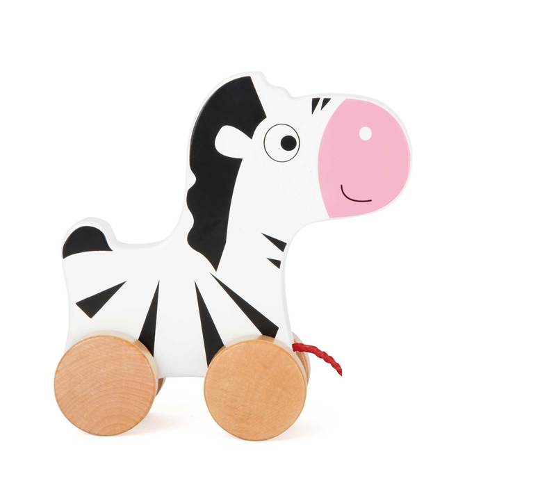 Cute and striped! This pull-along zebra is a joyful companion on all trips - and is vividly painted on solid wood. Whether on a safari through the children's room or in the wild savannas of the front yard, this wild but good-natured animal friend rolls on stable, free-moving wheels wherever their human pal wants to go. A great friend for the first (and second!) steps - the pull-along zebra is a classic and a guaranteed success!