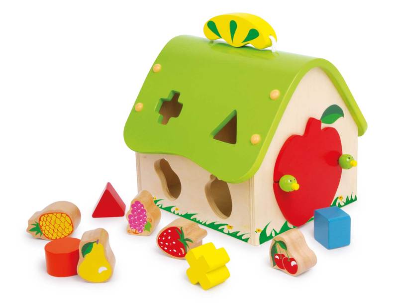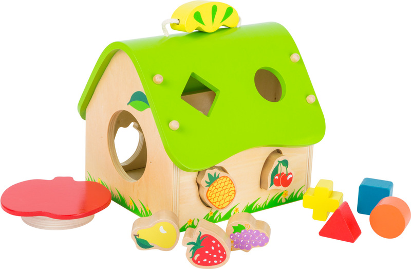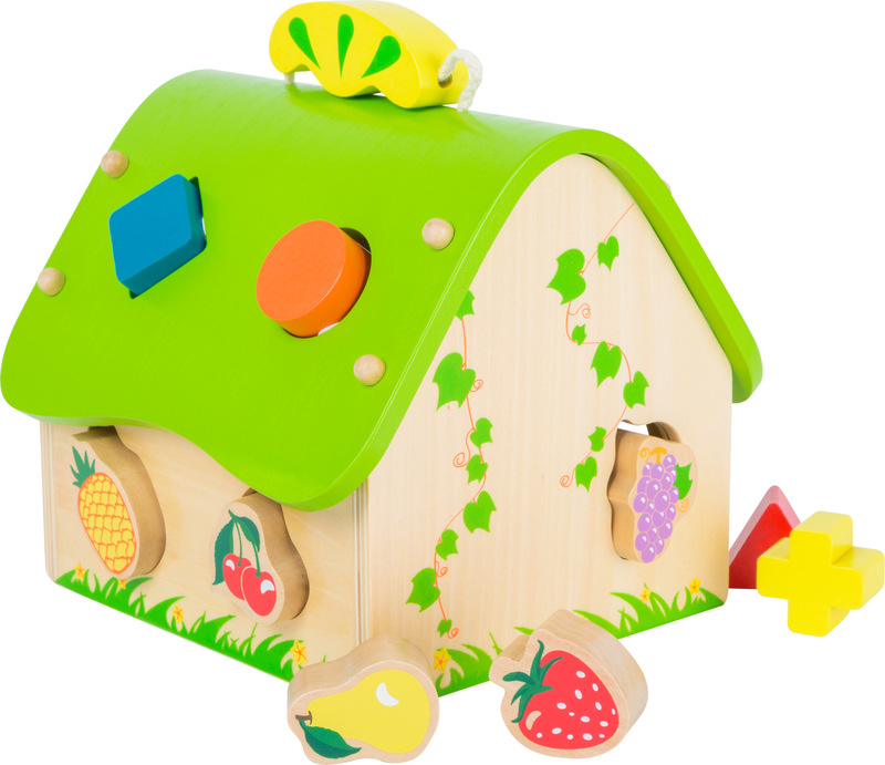 Discover and learn with this new coloured house made from firm plywood. The house comes with 9 different fruit elements made of solid wood. Sorting the various elements assists children in improving their basic motor skills and is fun at the same time!