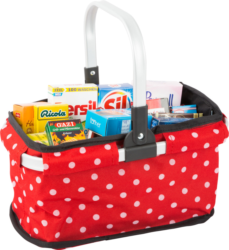 I?m going shopping! All the products included in the delivery can fit inside this shopping basket with cheerful dots. The big shopping spree can begin! Content may differ from the illustration. With the robust nylon fiber material and the stable carrying handle, the shopping tour in the Mom and Pop store will fire on all cylinders!
