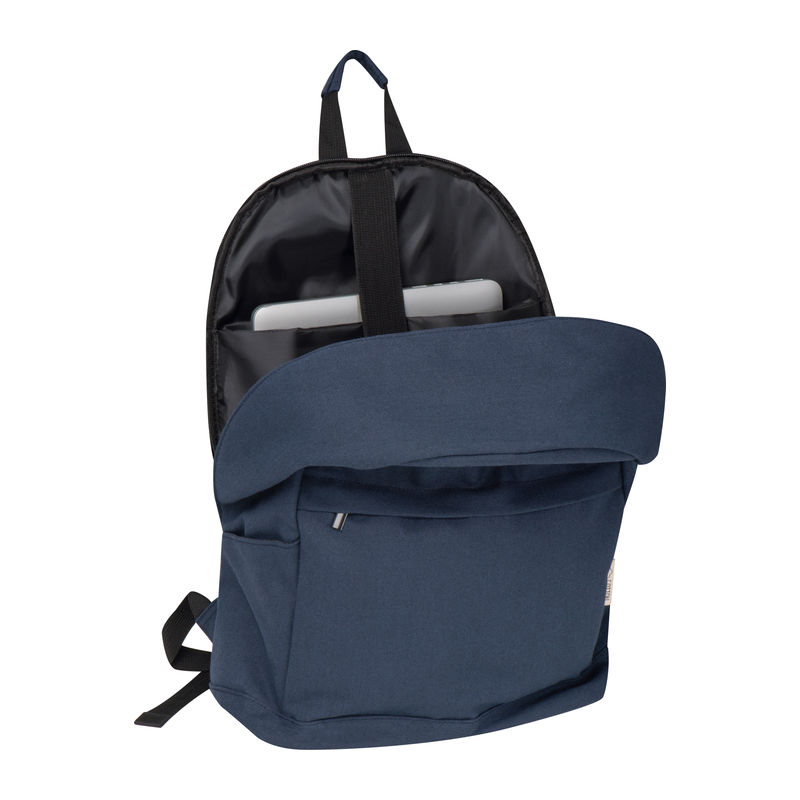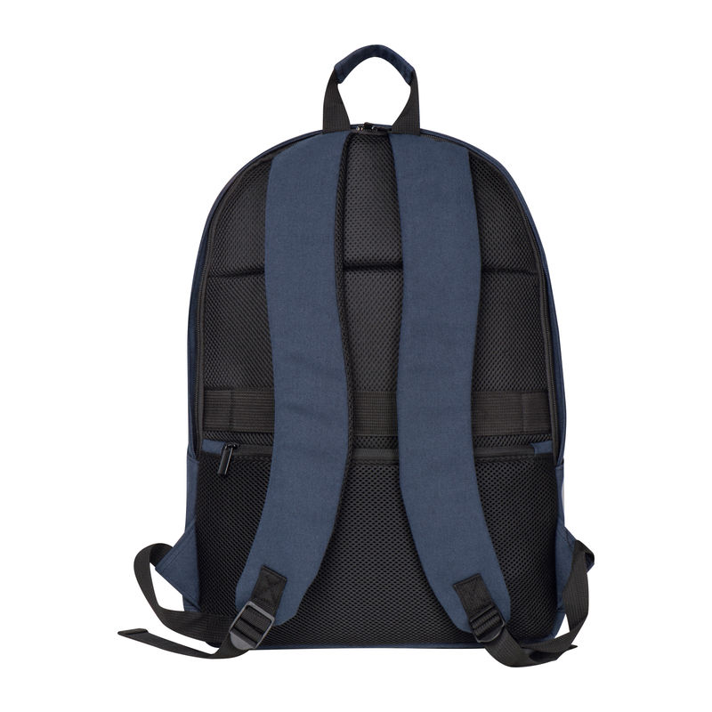 Backpack made from recycled cotton. With padded shoulder straps and back section and a laptop compartment inside. An additional zip compartment is incorporated into the back section and offers extra protection against theft. We will print your logo on the front compartment.
