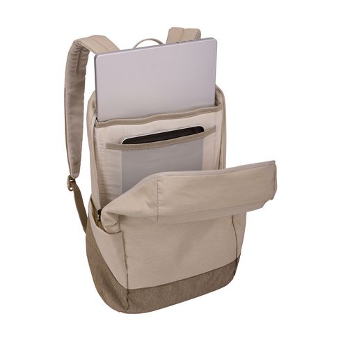 Stylish polyester backpack from the Thule brand. The spacious compartment features protective pockets for a laptop up to 15.6 inches and a slip pocket for a tablet up to 10.5 inches. The front pocket with press stud closure provides quick access to a phone, keys and other accessories. With side pockets and hidden zip pocket on the back. The adjustable shoulder straps and the back panel are equipped with foam and guarantee excellent wearing comfort. Fully lined. The ideal backpack for commuting. Capacity approx. 20 litres.