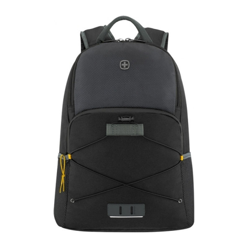 Fashionable and eco-friendly laptop and tablet backpack with multiple compartments and pockets to keep everything in its place. Key features: 100% main outer fabric made from recycled PET bottles Padded compartment for an up to 15.6'' laptop Dedicated padded 10'' tablet pocket Spacious main compartment Essentials organiser keeps items like phone, wallet, passport, etc., neat and accessible Front pocket with coated zip secures and provides quick and easy access to items you need most frequently Mesh side pockets are sized to hold a water bottle or umbrella Air-flow back padding allows for air circulation to keep you cool Adjustable, padded shoulder straps for maximum comfort Grab handle for easy carrying Rubber patch with reflective strip holds a bicycle light Front cording holds jacket or larger accessories Capacity 22 l Weight 0.6 kg.