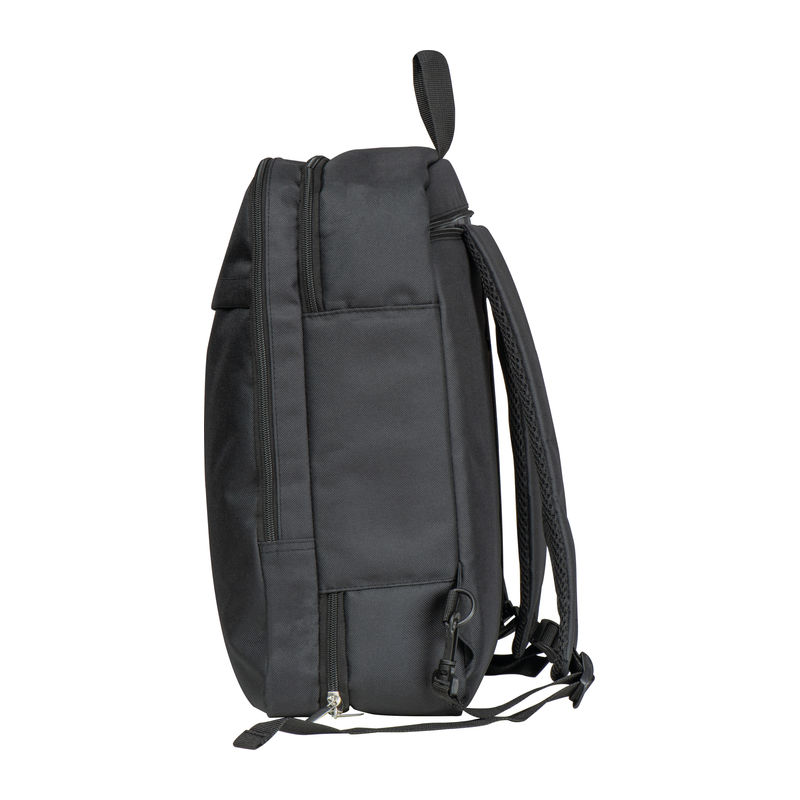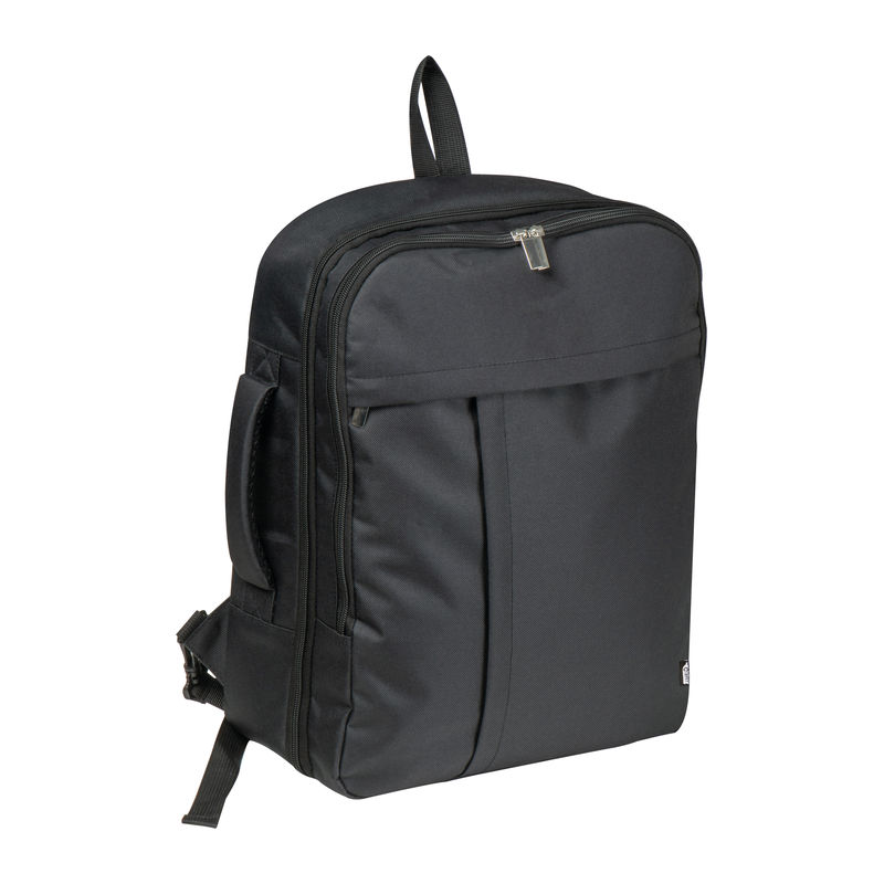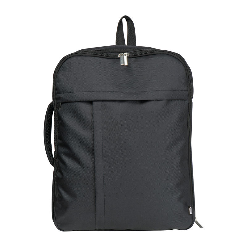 CrisMa travel backpack made from RPET with laptop compartment and large front compartment. The all-round zip allows it to be packed like a suitcase. The padded shoulder straps can be stowed in a zip compartment and the bag can be used as a bag thanks to the carrying handle on the side. We will print your logo on the front.