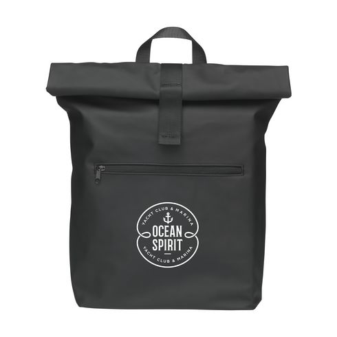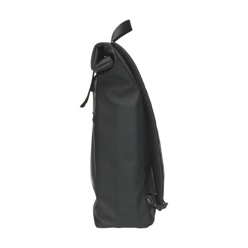 Practical, sturdy and spacious 'roll-top' laptop backpack with an extra zip pocket on the front. This backpack has a handy roll closure with Velcro at the top as well as a zipper. The backpack is made from water-repellent PU, 5% recycled PU and 42% recycled polyester. The backpack has a neatly finished lining made from recycled PET and is fully equipped. The spacious inner compartment has a special laptop compartment for the safe transport of a laptop (up to 15.6 inches) or tablet. You will also find several pockets on the inside for the organised storage of a mobile, stationery or other accessories. By using the elastic band on the inside, a drinking bottle remains upright in place. Also supplied with a handy carrying strap. For extra comfort, adjustable back and shoulder straps are provided with soft foam. This backpack is perfect for daily use and you can easily take it to school or work. RCS-certified. Total recycled material: 47%. Capacity approx. 19 litres.