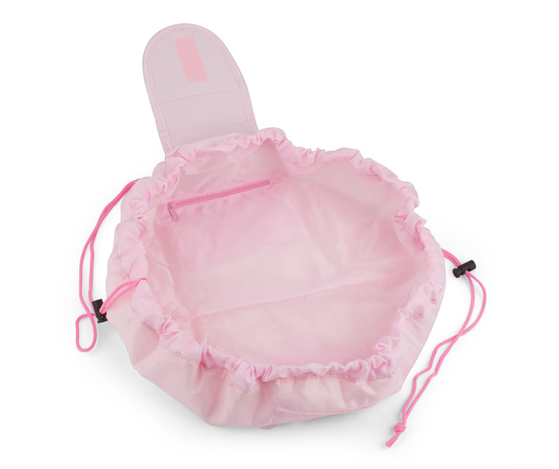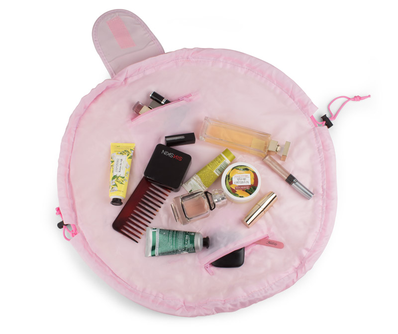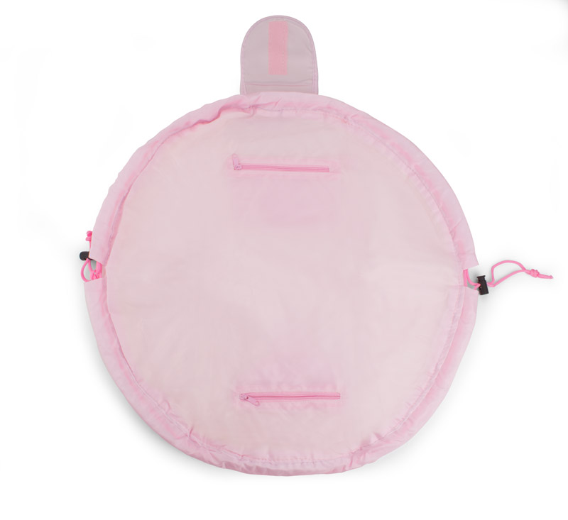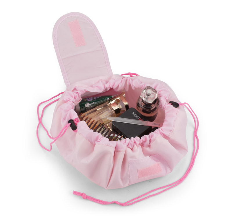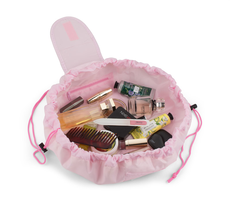 Unique RUEDA cosmetic bag will accommodate all of the most needed handy cosmetics. The unique way of closing allows for quick access to its contents. Inside the case there are two smaller zipped pockets, and outside there is one non-zipped pocket. The main compartment of the cosmetic bag is closed by pulling the cord and a Velcro flap. The cosmetic bag is made of 230D polyester.