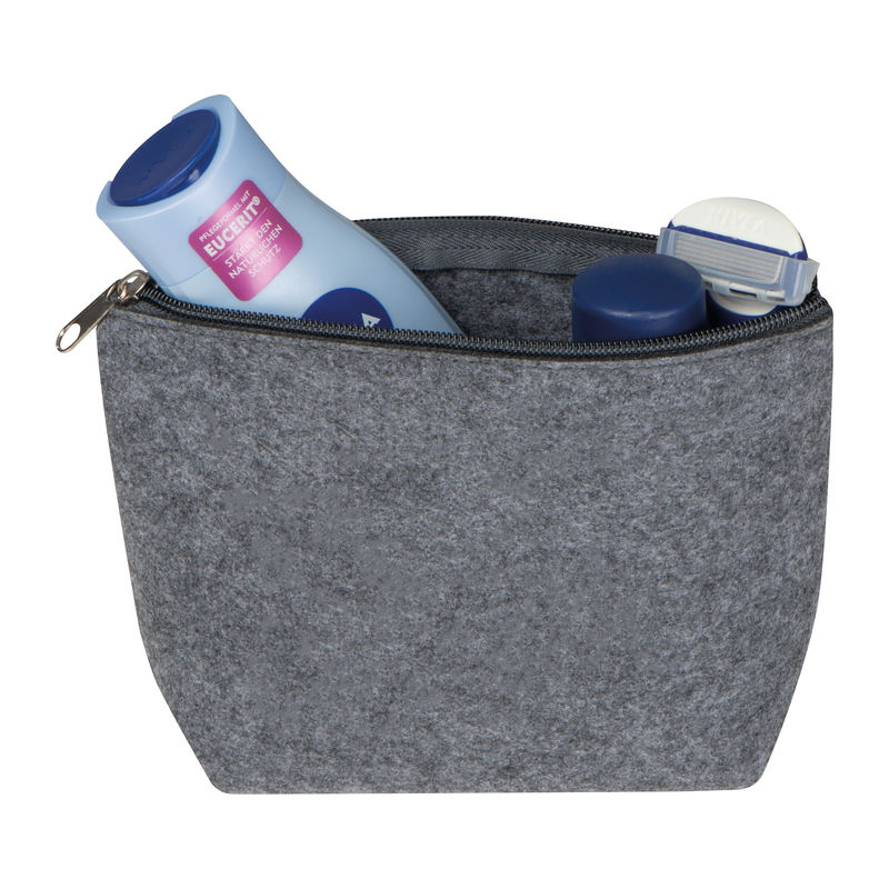 Cosmetic bag crafted from RPET felt, featuring a secure zip closure. An ideal companion for all journeys and everyday occasions.