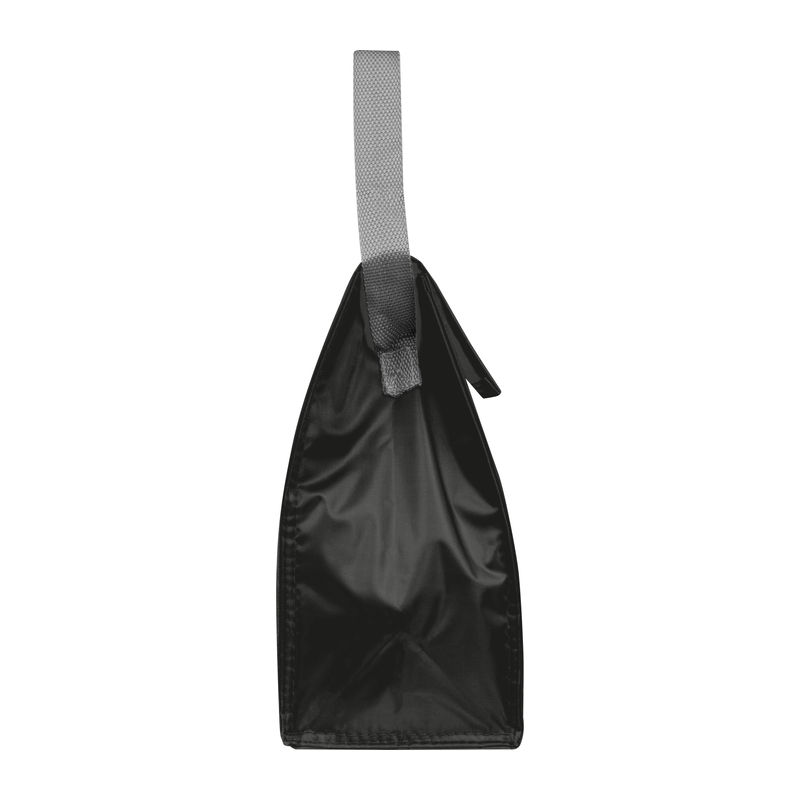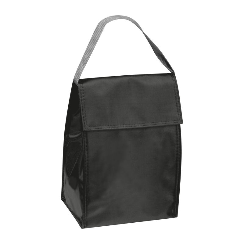 Polyester cooling bag featuring insulating foil lining and a Velcro fastener for secure closure.