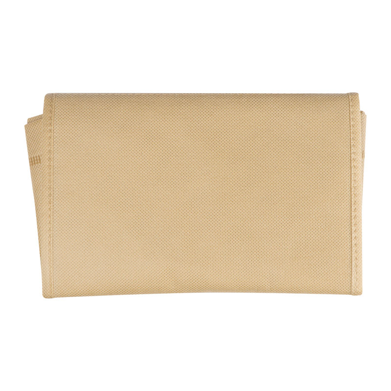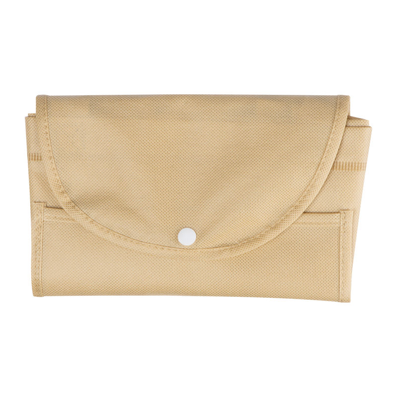 Foldable non-woven bag with a fabric weight of 80 g/m², featuring robust cross stitching and short handles for convenient carrying.