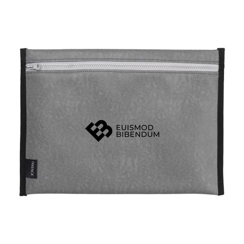A 15,6-inch laptop sleeve from the Fraenck brand. Made from upcycled imitation leather. The soft, thick lining protects your laptop from damage. Both sides of the sleeve are reinforced with bias tape. Fitted with a sturdy zip. Suitable for storing and safely transporting a laptop or tablet up to 15,6 inches. Made in Holland.