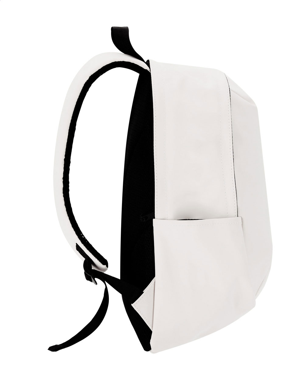 Soft PU leather backpack with zipped compartment, padded laptop (15") compartment, side pockets, padded back and shoulder straps.