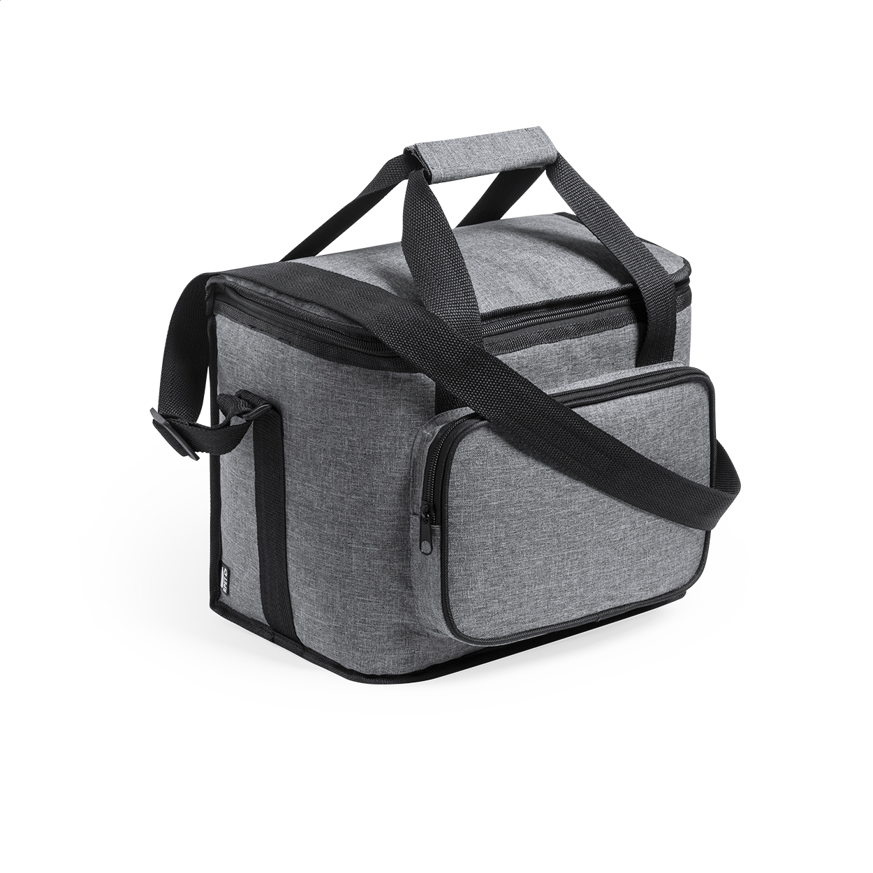 RPET cooler bag with PEVA padding, zipped compartments, handles with velcro and adjustable shoulder strap. With distinctive RPET label. 600D RPET polyester.