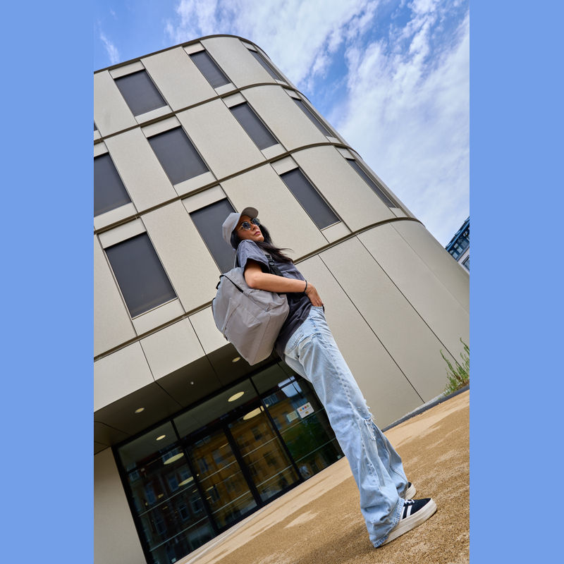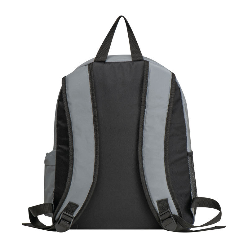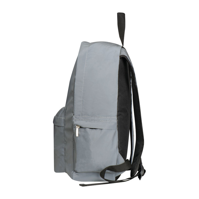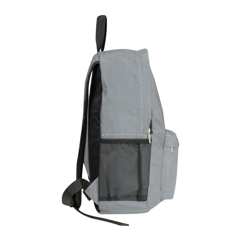 Highly reflective backpack crafted from 190T reflective material and 600D polyester, featuring a laptop compartment, side bottle holder, and a small front pocket. Designed to ensure maximum visibility both day and night.