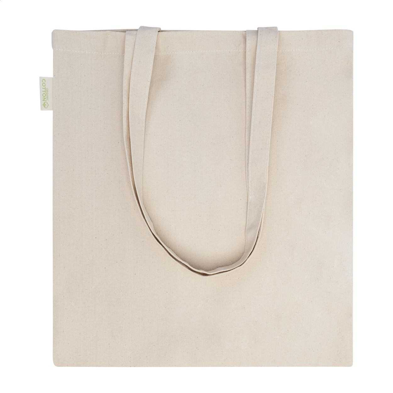 Organic cotton shopping bag with long handles. 100% organic cotton, 120 g/m².