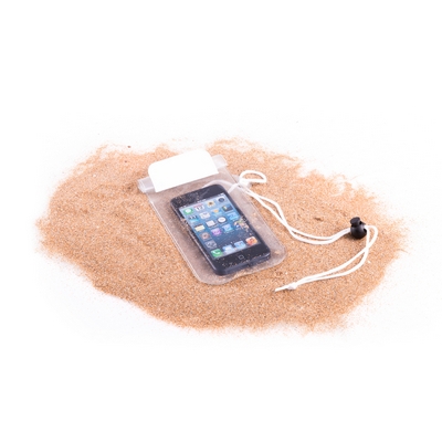Waterproof personal pouch with cord, ability to use touch screen devices