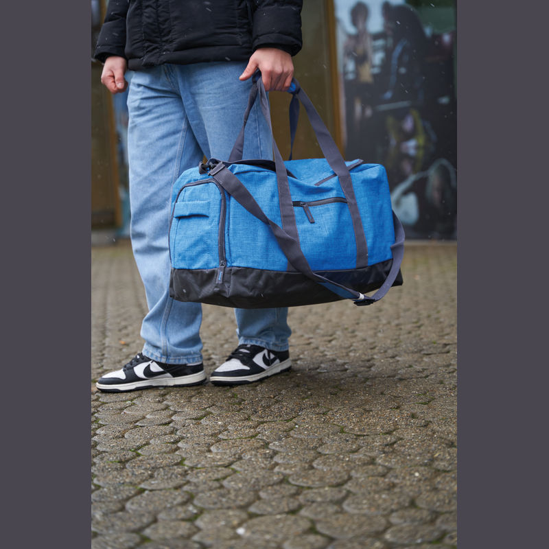 The perfect sports bag - HQ 1680D Material. This bag is perfect for your sport clothes with it´s filling capacity of 55 liters. The compartment on the side is perfect for shoes or wet clothes - the inner compartment is huge and the front one is perfect for quick access. Your logo will be printed on the front pocket.